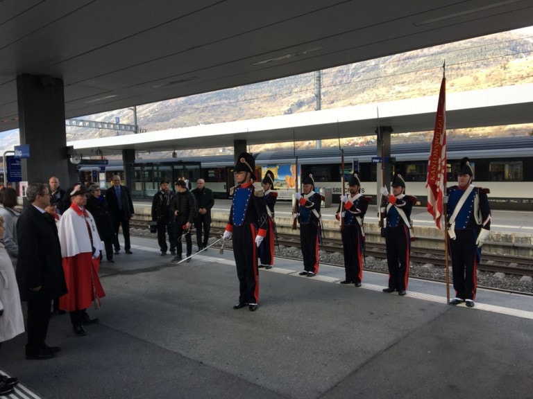Die Ehrengarde der Kantonspolizei Wallis nahm am Mittwoch, 28. November 2018 in Visp ihren ehemaligen Departementsvorsteher Jean-René Fournier in Empfang und begleitete den frisch gewählten Ständeratspräsidenten in unsere Kantonshaupstadt.