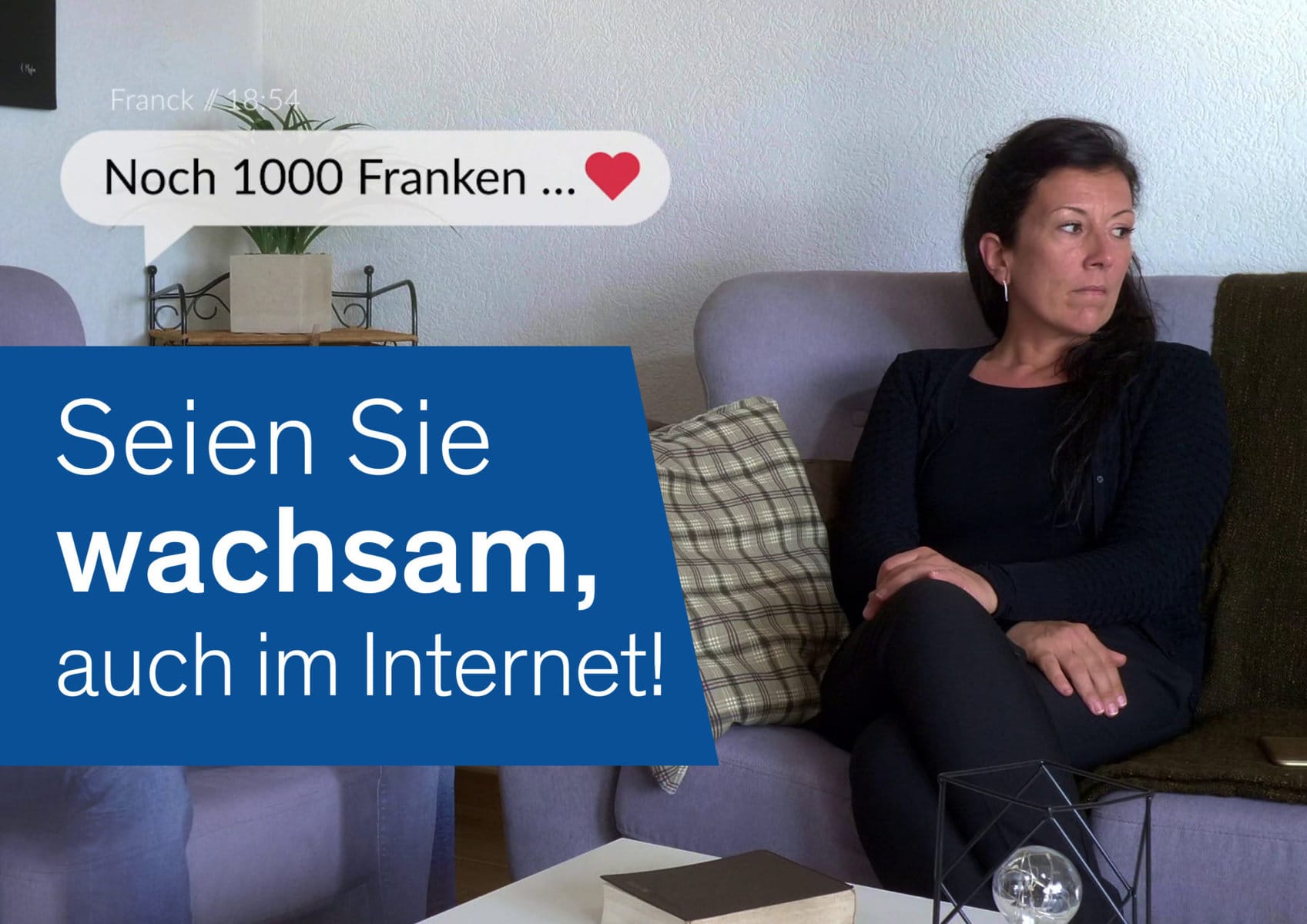 Der zweite Teil der Kampagne will nun auf die Gefahren einer spezifischen Form von Cyberbetrug aufmerksam machen, bei dem Menschen ins Visier genommen werden, die im Internet nach einer Partnerin oder einem Partner suchen oder für entsprechende Anfragen empfänglich sind. Der Romance Scam ist ein Delikt, das grosse und nachhaltige Schäden verursacht: Die Betrüger und Betrügerinnen leeren nicht nur das Konto ihrer Opfer, sondern brechen auch ihr Herz. Mit der Geschichte von Marie, die sich in den fiktiven Franck verliebt und eine grosse Enttäuschung erlebt, sollen die vier allgemeinen Botschaften der Kampagne hervorgehoben werden, die das Risiko vermindern, Opfer eines Internetbetrugs zu werden: