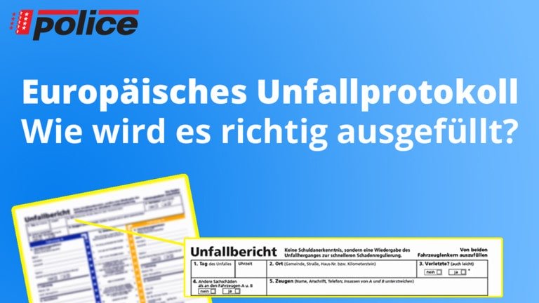 Wenn sich auf öffentlichen Strassen Unfälle mit Sachschaden ereignen und keine Personen verletzt werden, ist ein Polizeieinsatz nicht zwingend erforderlich. Das Ausfüllen eines Unfallprotokolls stellt für viele Verkehrsteilnehmer jedoch eine Herausforderung dar. Aus diesem Grund hat die Kantonspolizei beschlossen, eine digitale Gebrauchsanleitung für die Erstellung eines europäischen Unfallprotokolls zu verfassen.