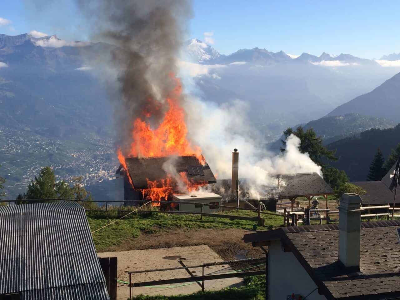 Die Einsatzzentrale der Kantonspolizei wurde durch eine Drittperson über eine Brandentwicklung in einer Alphütte am Orte genannt „Le Grenier“ auf der Alpe „Bouzerou“ oberhalb von Loye informiert. Die Angestellten konnten die Alphütte unverletzt verlassen. Die unverzüglich aufgebotenen Stützpunkt Feuerwehren von Vallon, Sitten und Siders waren mit rund 30 Personen vor Ort und konnte den Brand unter Kontrolle bringen. Es entstand jedoch erheblicher Sachschaden Eine Untersuchung ist im Gang, um herauszufinden ob ein technischer Defekt die Ursache des Brandes sein könnte.