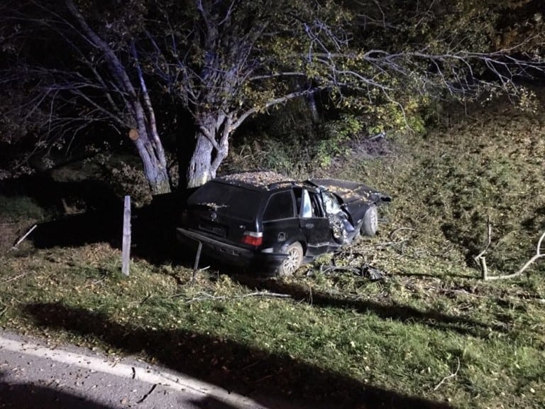 Ein Automobilist und ein Beifahrer fuhren mit einem Personenwagen auf der Route de Bevioc von Nax in Richtung Itravers. Eingangs einer Linkskurve verlor der Lenker vermutlich wegen nicht angepasster Geschwindigkeit, die Herrschaft über das Fahrzeug. Der Personenwagen rammte den rechten Strassenrand, kam von der Fahrbahn ab und prallte gegen einen Baum. Gegen 06:00 entdeckte ein vorbeifahrender Automobilist den Unfall und avisierte die Einsatzzentrale der Kantonspolizei.
