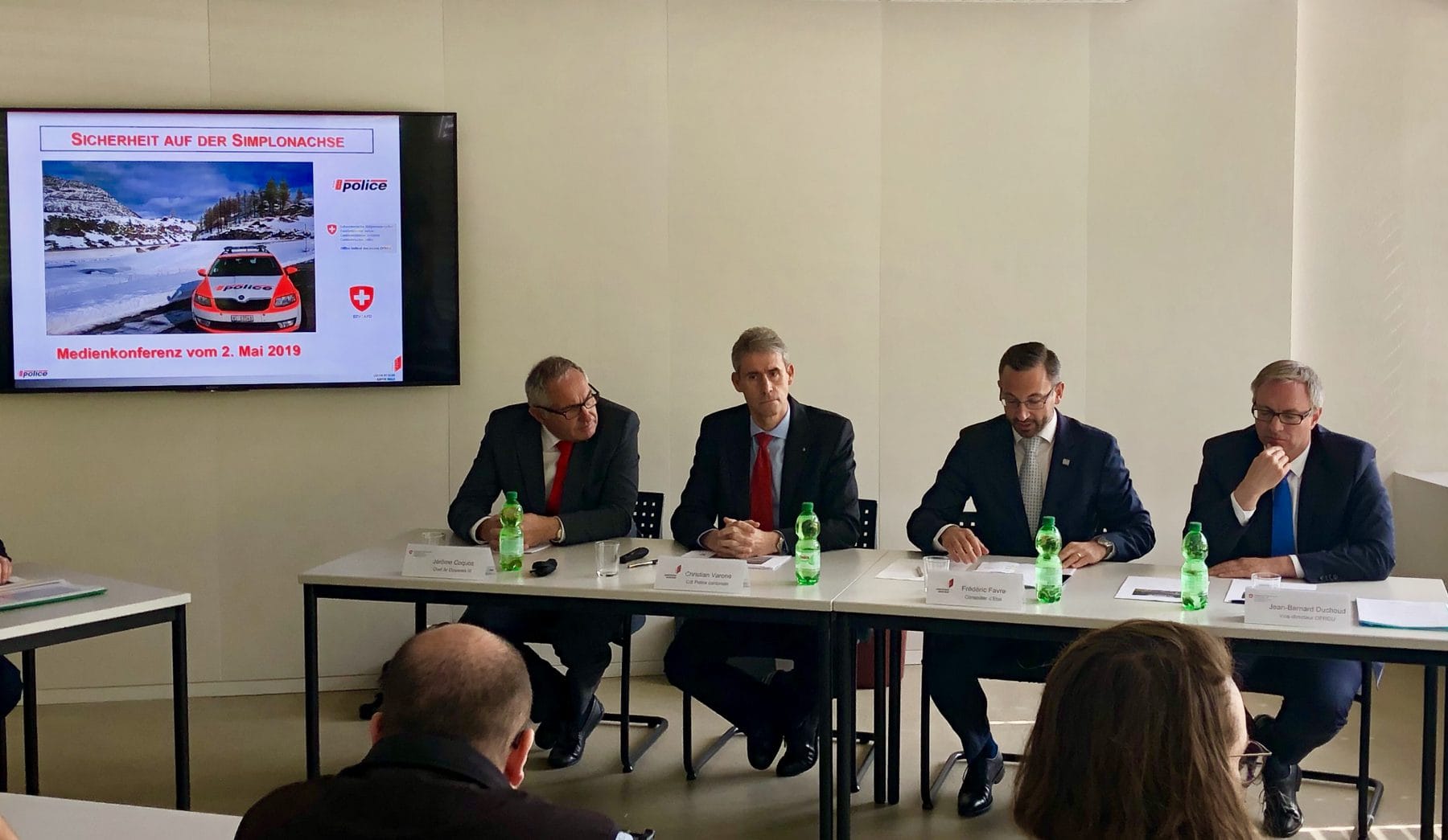 Am 2. Mai 2019 gaben der Vorsteher des Departements für Sicherheit, Institutionen und Sport, Staatsrat Frederic Favre, der Kommandant der Kantonspolizei, Christian Varone, der stellvertretende Direktor des Bundesamtes für Strassen, Jean-Bernard Duchoud, und der Chef des Zollkreis III, Jérôme Coquoz, eine Pressekonferenz in Brig-Glis zum Thema Stärkung der Verkehrssicherheit auf der Simplon-Achse.