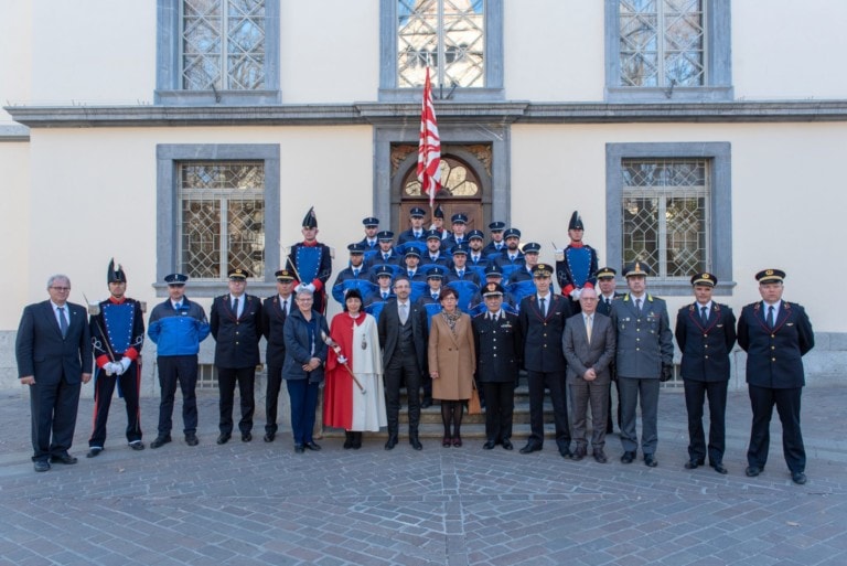 In einem Defilee – angeführt von der Ehrengarde und dem Spiel der Kantonspolizei Wallis – wurden die angehenden Polizistinnen und Polizisten zur Kathedrale von Sitten begleitet. Vor der Kathedrale schritten Staatsrat Frédéric Favre und der Kommandant der Kantonspolizei, Christian Varone, das Ehrendetachement ab.