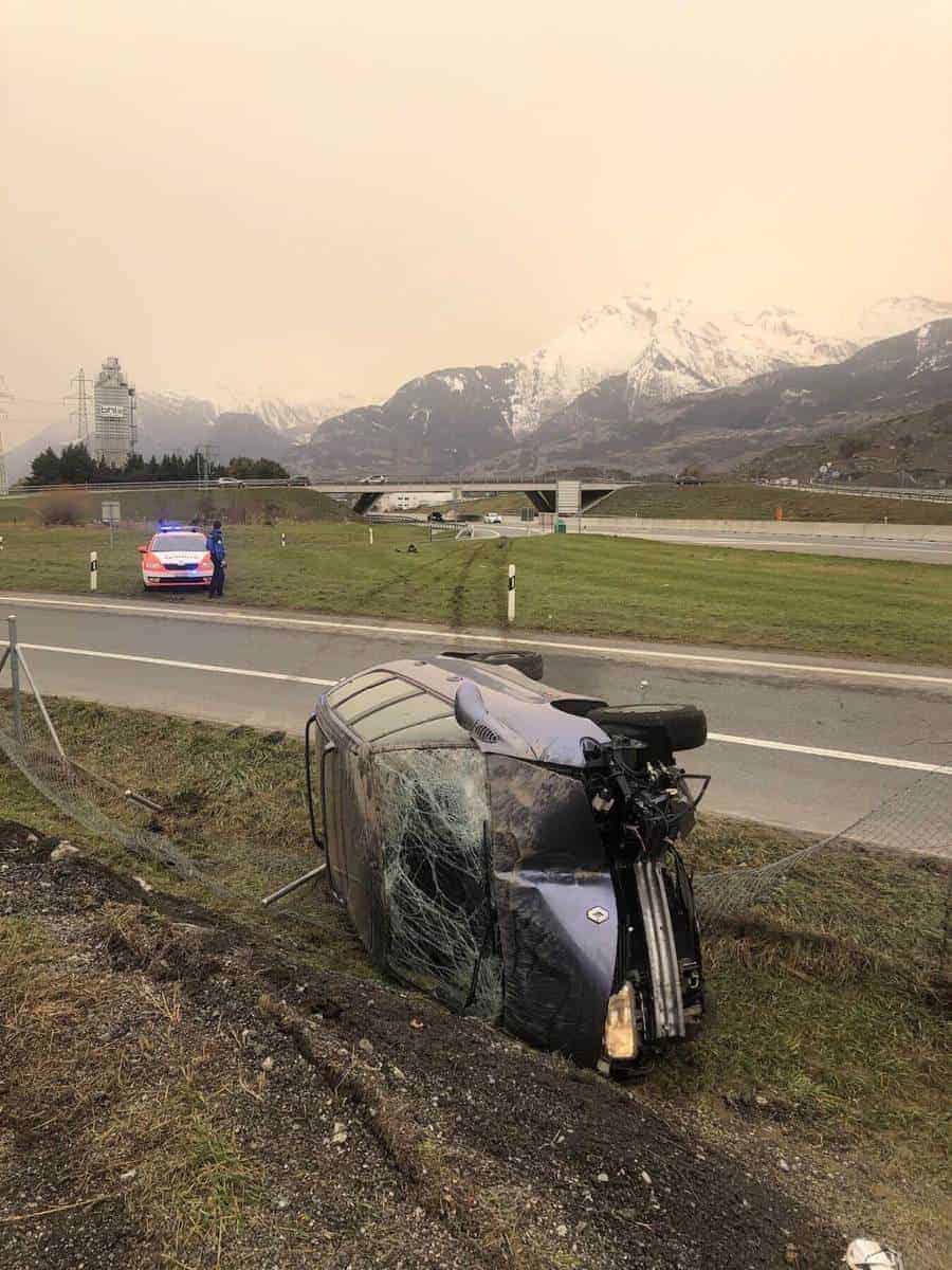 Gegen 13:30 Uhr fuhr ein Automobilist – der zuvor die Anhalte-Weisungen einer Patrouille der Kantonspolizei missachtet hatte – mit hoher Geschwindigkeit auf der Autobahn A9 in Richtung Sitten. Dabei beging er mehrere Verkehrs-Widerhandlungen. Darunter mehrere Überhohlmanöver (rechts überholen) mit einer Geschwindigkeit von über 200 km/h. Die Polizei bot rasch ein Dispositiv auf. Bei der Ausfahrt Sitten-West verlor der Lenker die Herrschaft über sein Fahrzeug. Der Mann konnte nach dem Unfall von den Polizisten festgenommen werden. Leicht verletzt wurde er ins Spital von Sitten transportiert und anschliessend auf Anordnung der Staatsanwaltschaft inhaftiert.