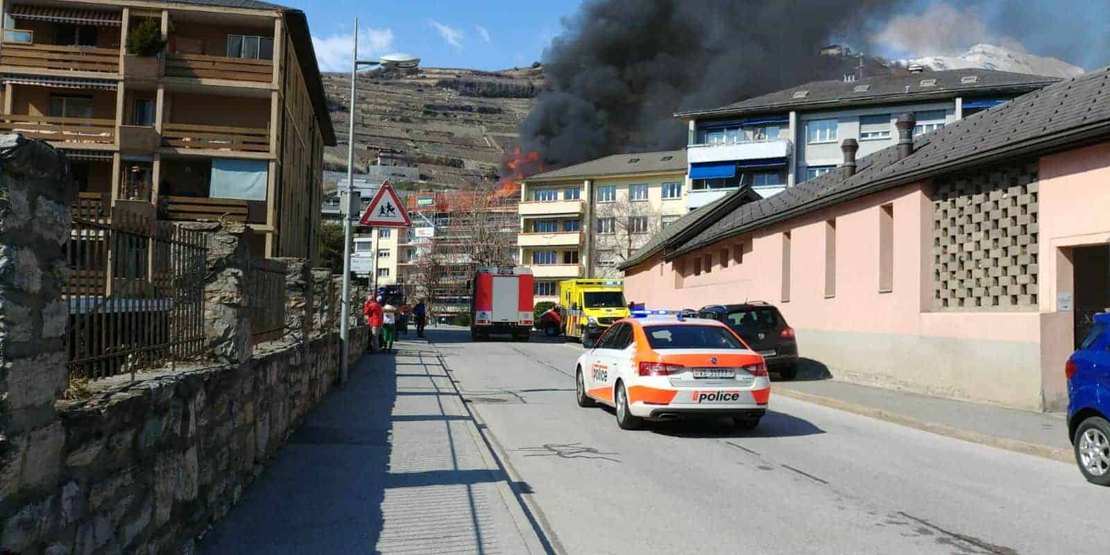 Die kantonale Polizeieinsatzzentrale erhielt nach einem Dachbrand in Sion im Bezirk Gravelone mehrere Anrufe.