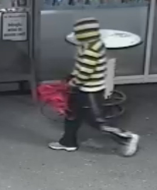 Männlich, 25 – 30 Jahre alt, ca. 170 cm gross, schlanke Statur, grüne Augen, sprach französisch mit leichtem ausländischen Akzent, trug einen weissen Pullover mit schwarzen Streifen und Kapuze, schwarze Sporthosen der Marke Adidas, olivgrünes Halstuch, führte einen roten Rucksack mit sich.