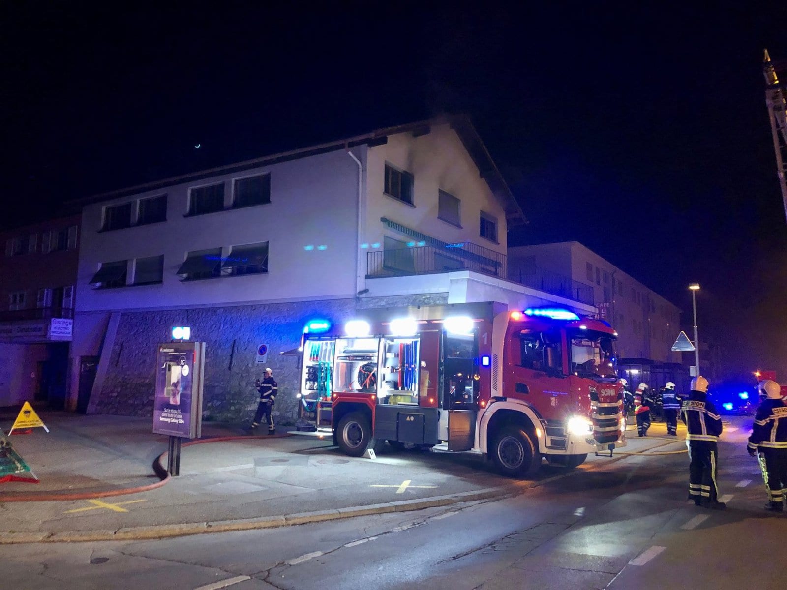 Eingesetzte Mittel: Kantonspolizei, Regionalpolizei « Villes du Centre », Stützpunktfeuerwehr Sitten, Ambulanzdienst