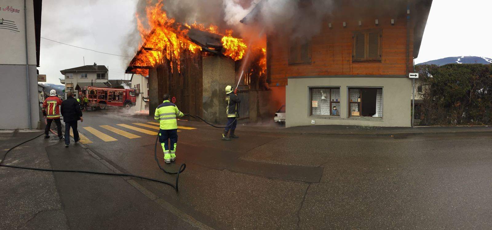 Eine Drittperson meldete der Einsatzzentrale der Kantonspolizei einen Brandausbruch in einer Scheune an der Route de St- Germain 36 in St-Germain in Savièse. Die unverzüglich aufgebotene Feuerwehr von Savièse begab sich rasch vor Ort. Die Flammen breiteten sich auf das Dach des nebenstehenden Wohnhauses aus. Gegen 15:45 hatte die Feuerwehr den Brand unter Kontrolle und gelöscht.