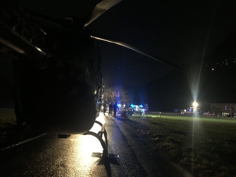 Kantonspolizei – Gemeindepolizei Salentin – 5 Ambulanzen – 1 Helikopter Air-Glaciers/Maison du Sauvetage FXB – SMUR – Stützpunktfeuerwehr Monthey und Umgebung.