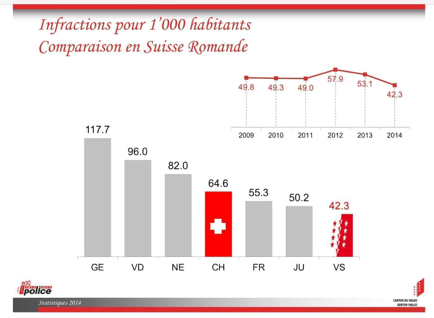 • Wir verbessern unsere Sicherheit. Das Wallis ist einmal mehr in der Westschweiz der Kanton mit der tiefsten Kriminalitätsrate (im Verhältnis zur Bevölkerung).