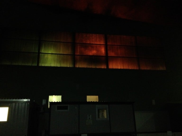 Steg: Dachbrand in einer Fabrikhalle