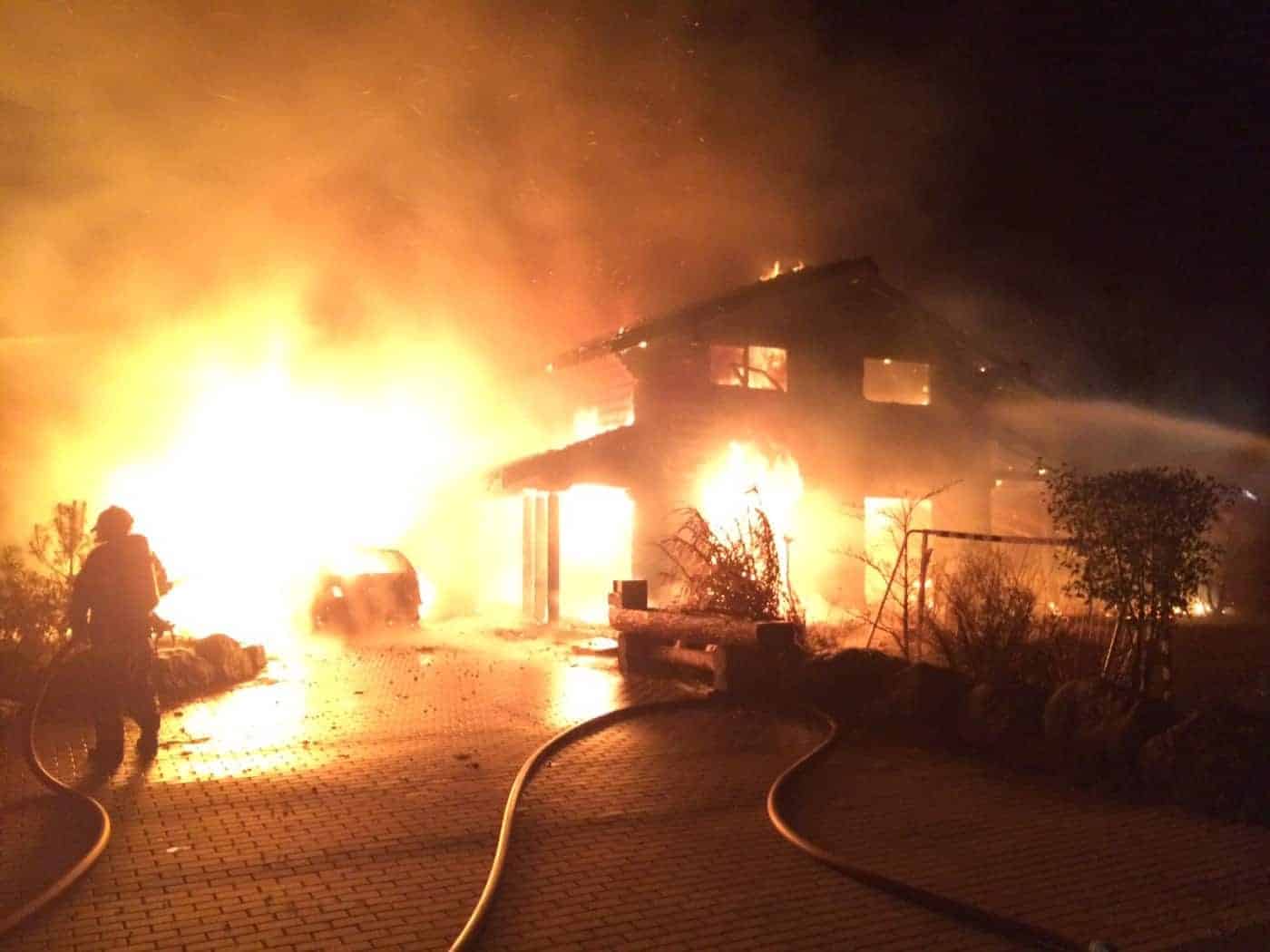 Von Brandgeruch geweckt, begab sich der Eigentümer vor das Haus des und bemerkte, dass die Holzterrasse brannte. Unverzüglich ging er  zurück ins Haus und weckte die drei Kinder und seine Lebensgefährtin und brachte diese in Sicherheit. Die Flammen griffen rasch auf das Rundholzhaus über. Durch das Feuer wurde das Haus total zerstört. Ein vor dem Haus abgestellter Personenwagen wurde ebenfalls ein Raub der Flammen und brannte total aus. Die Brandursache ist zur Zeit noch nicht bekannt Eine Untersuchung wurde eingeleitet. Aufgebotene Einsatzkräfte: Feuerwehr von Vernayaz (14 Mann) – Kantonspolizei.