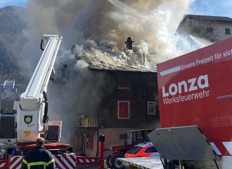 Der Brand brach kurz nach 12:15 aus. Eine Drittperson meldete der Einsatzzentrale der Kantonspolizei eine starke Rauchentwicklung in einem Einfamilienhaus an der Bürchnerstrasse in Visp.