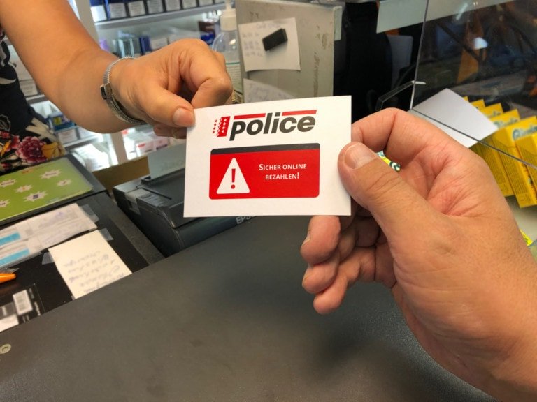 Bereits im Februar 2020 wurde mit einer Medienmitteilung die Bevölkerung auf diese Betrugsform hingewiesen. Da die Fallzahlen weiterhin ansteigen, hat sich die Kantonspolizei dazu entschieden, ein Faltblatt mit den wichtigsten Sicherheitsregeln zu erstellen. Diese Flyer im Kreditkartenformat wurden nun in den vergangenen Tagen an Verkaufsstellen (Kioske, Tankstellen und Shops) von unseren Polizistinnen und Polizisten verteilt.